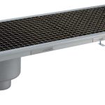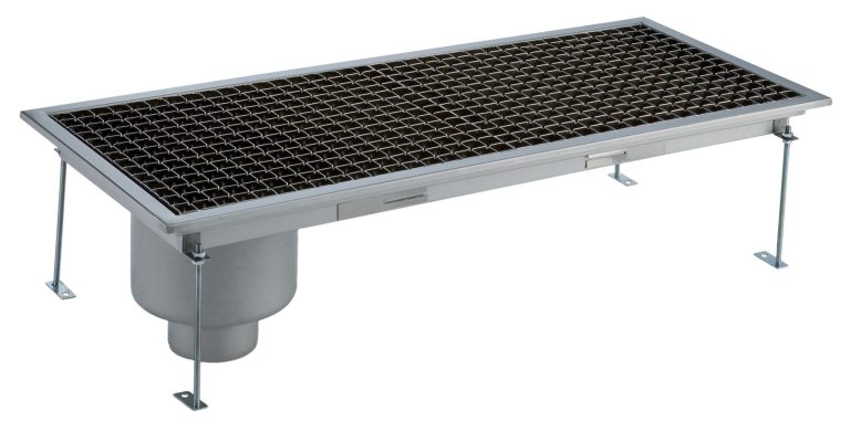 Vasca di raccolta con grigliato, sifone laterale, filtro, scarico verticale dia.100 mm, AISI 304