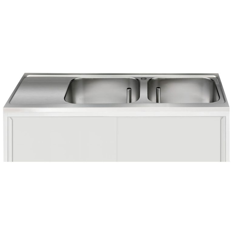 - Piano di lavoro in acciaio inox AISI 304 (CrNi 18/10) di 40 mm di altezza e spessore lamiera di 15/10