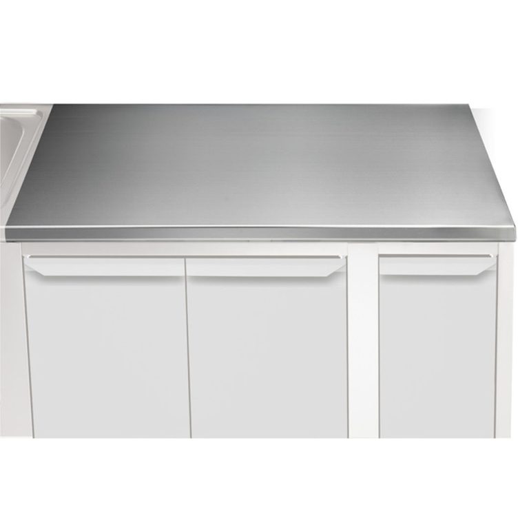 - Piano di lavoro in acciaio inox AISI 304 (CrNi 18/10) di 40 mm di altezza e spessore lamiera di 15/10