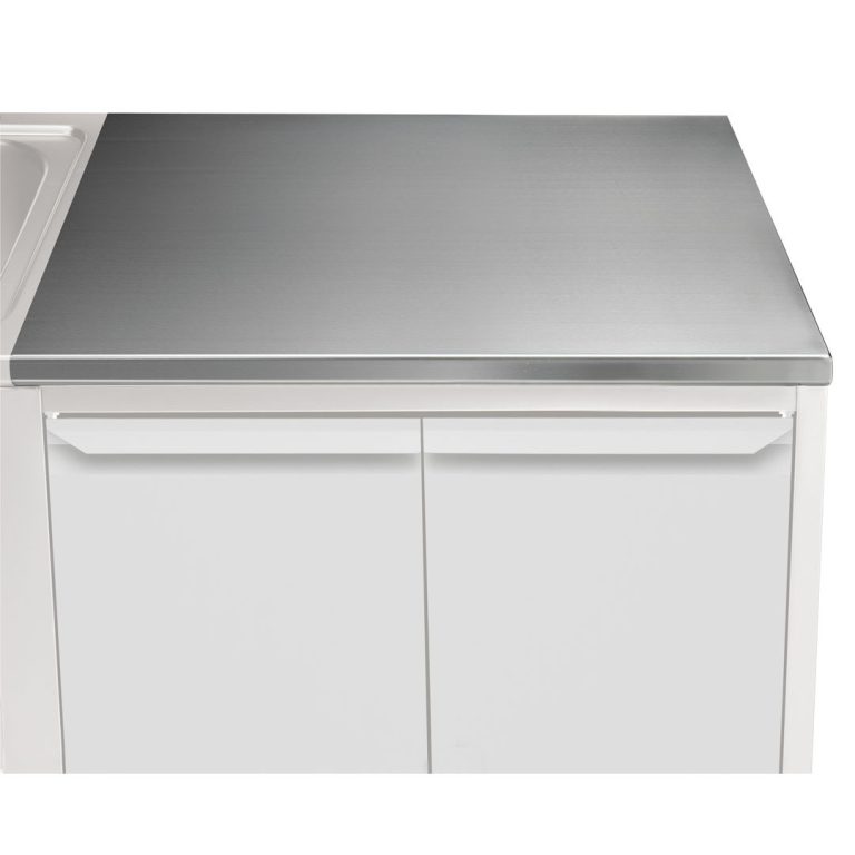- Piano di lavoro in acciaio inox AISI 304 (CrNi 18/10) di 40 mm di altezza e spessore lamiera di 15/10