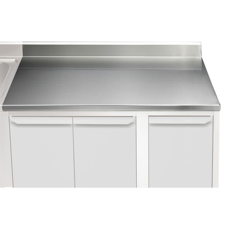- Piano di lavoro in acciaio inox AISI 304 (CrNi 18/10) di 40 mm di altezza e spessore lamiera di 15/10