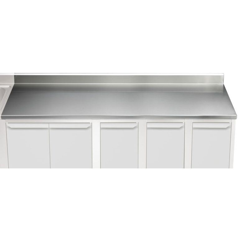 - Piano di lavoro in acciaio inox AISI 304 (CrNi 18/10) di 40 mm di altezza e spessore lamiera di 15/10