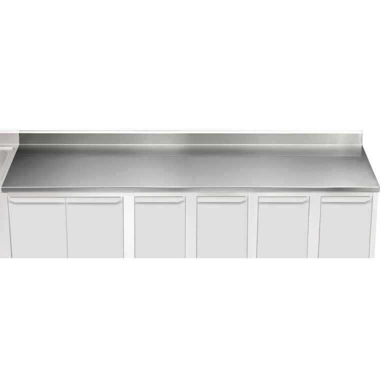 - Piano di lavoro in acciaio inox AISI 304 (CrNi 18/10) di 40 mm di altezza e spessore lamiera di 15/10