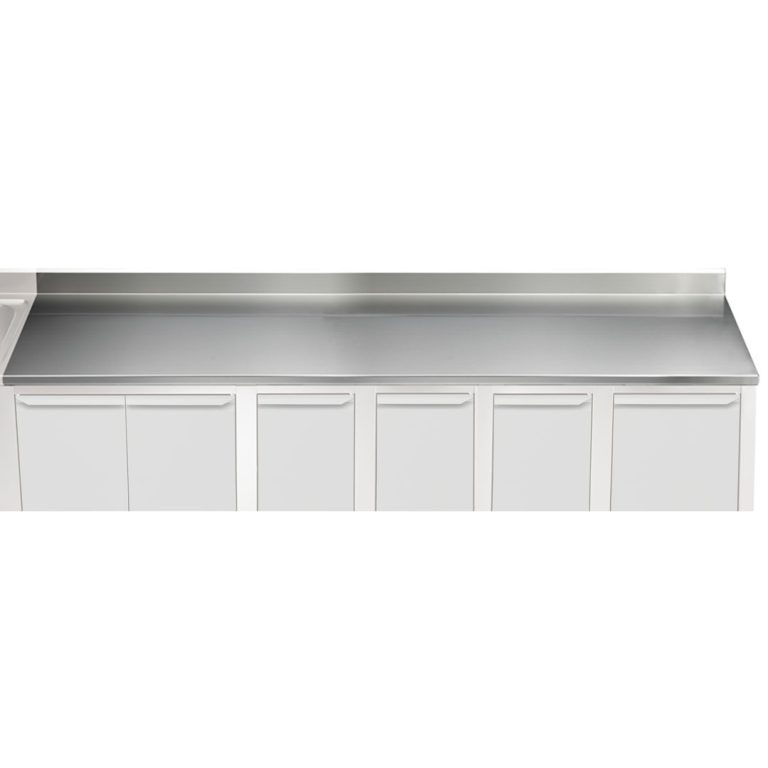 - Piano di lavoro in acciaio inox AISI 304 (CrNi 18/10) di 40 mm di altezza e spessore lamiera di 15/10
