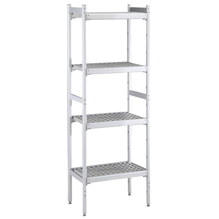 - Il montante e le staffe dei ripiani sono interamente costruiti in alluminio anodizzato (20 micron).
