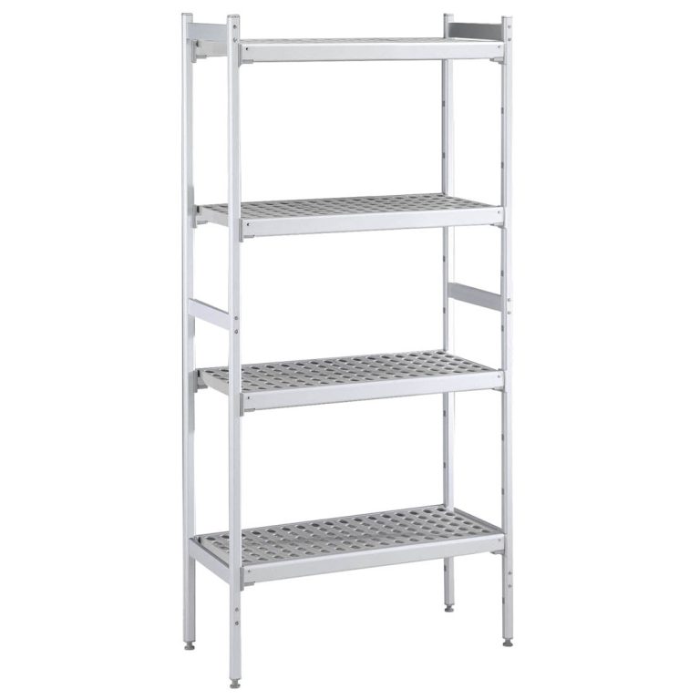 - Il montante e le staffe dei ripiani sono interamente costruiti in alluminio anodizzato (20 micron).