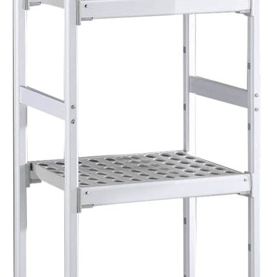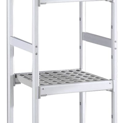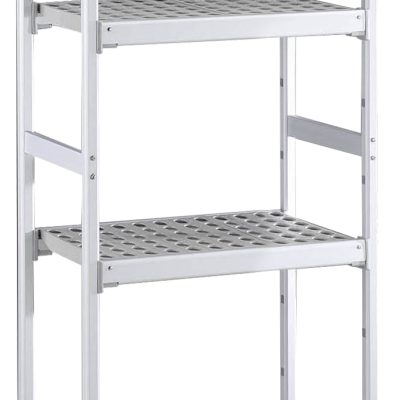 - Il montante e le staffe dei ripiani sono interamente costruiti in alluminio anodizzato (20 micron).