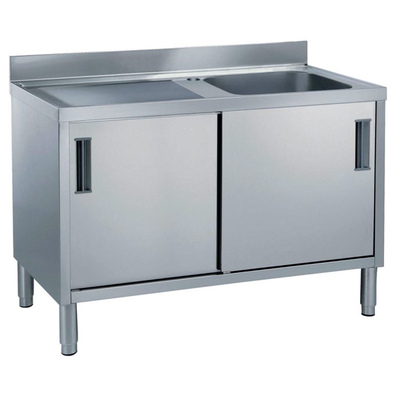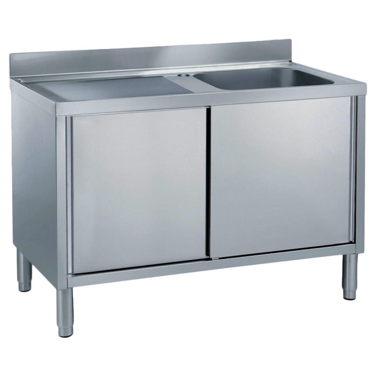 Lavatoio armadiato con 1 vasca 600x500 mm, gocciolatoio sinistro e 2 porte scorrevoli, da 1400 mm