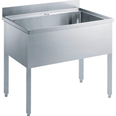 - Piano di lavoro in acciaio 10/10 AISI 304 di 50 mm di spessore con piega salvamani sui bordi.