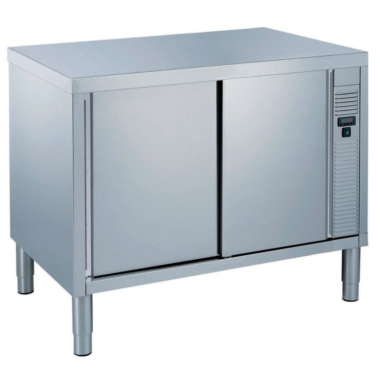 Tavolo armadiato caldo, ventilato, con 1 ripiano e 2 porte scorrevoli, da 1200 mm